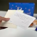 کارت‌پستال فروزان با طراحی چشم‌نواز، یک یادداشت پراحساس و فضای خالی برای نوشتنِ جملۀ دلخواه و نام هدیه‌دهنده.