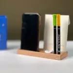 نگهدارندۀ رومیزی فروزان؛ از جنس چوب راش باکیفیت و مناسب برای سامان‌دهی قلم، موبایل، گلدان و… به همراه کارت‌پستال امام‌رضایی